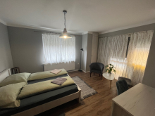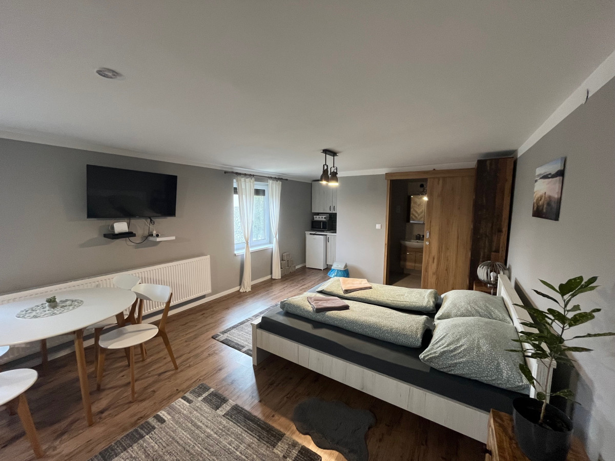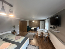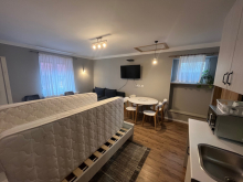 A nagyobb házban található egy 40 nm-es apartman / konyhával, fürdővel/ az alsó szinten, a felső szinten pedig szintén található egy apartman és két külön szoba is amihez külön tartozik egy fürdő-wc. Az alsó és a fenti szinthez is van külön bejárat is.