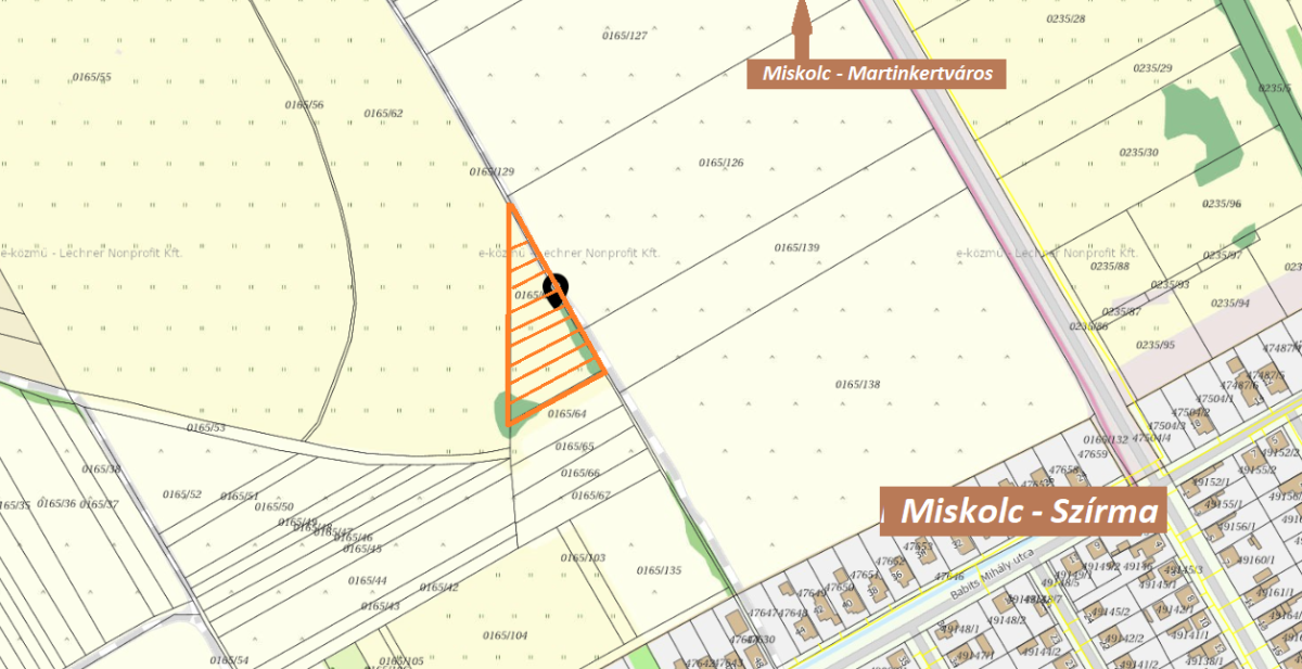 Eladó Miskolc külterületi részén Martinkertváros és Szirma közötti részen egy kivett 3481 nm nagyságú fejlesztési terület. Közművek könnyen elérhetőek a Babits Mihály utcáról. Az ingatlan alkalmas lehet akár 1-2 vagy akár 3 kisebb telephelynek is. Az ingatlan megközelítése a Szirma és Martinkertváros közötti útszakaszról lehetséges.