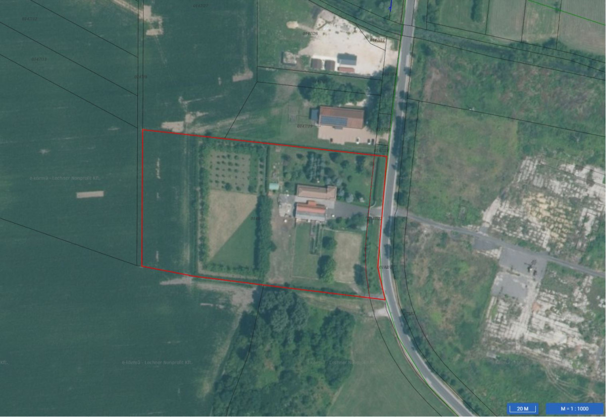 Az ingatlan egy hrsz-on található amiből 14.793 nm major megnevezésű és 4.510 nm szántó 14 AK, illetve előtte van egy út megnevezésű 1.158 nm-es ingatlan ami még hozzá tartozik, így összesen 20.461 nm a teljes megvásárolható terület. A két hektáros ingatlanból jelenleg cca. 1,5 hektár teljesen körbekerített és a felépítmények körül kb. 500 nm-nyi térkövezett terület található.