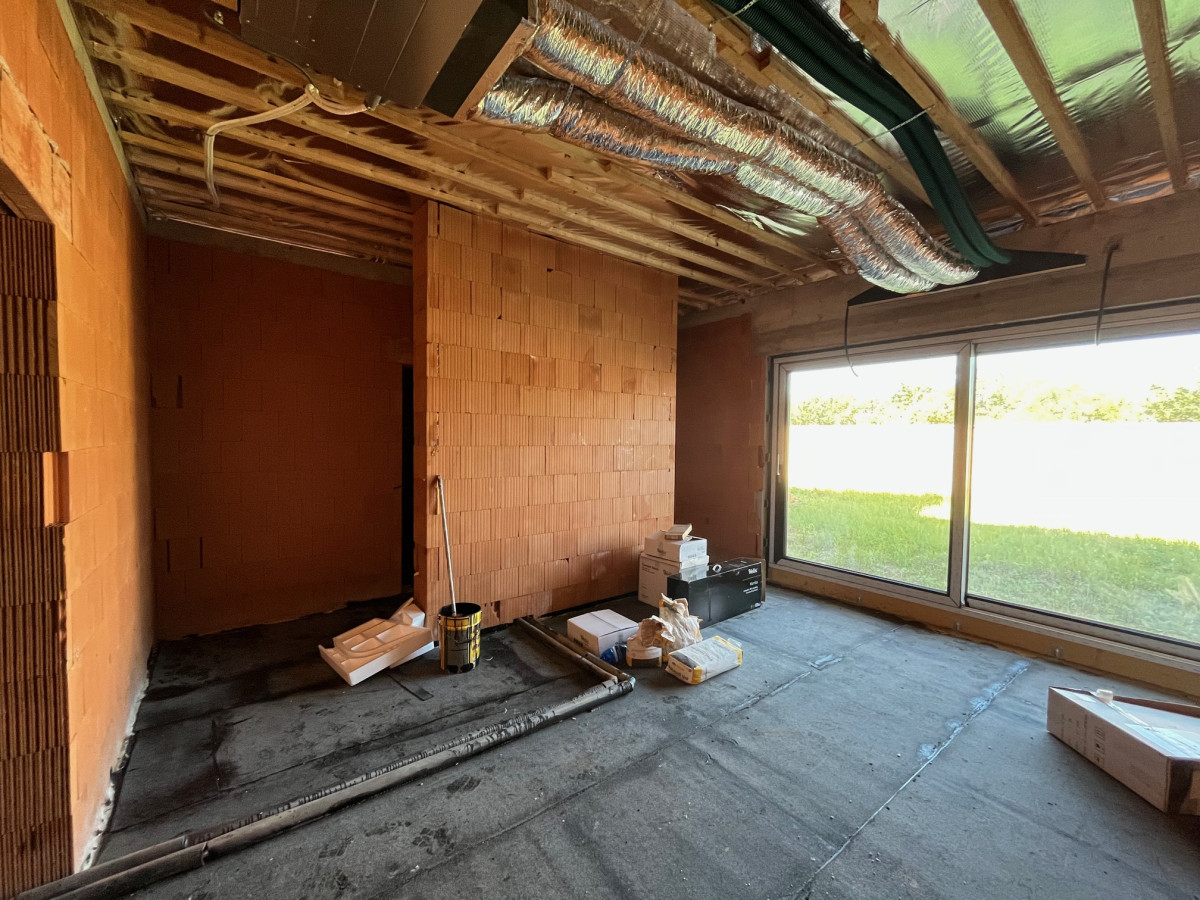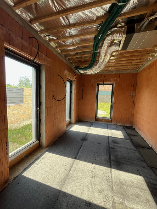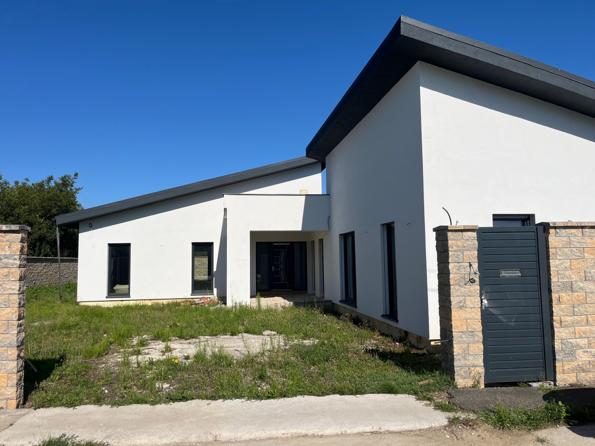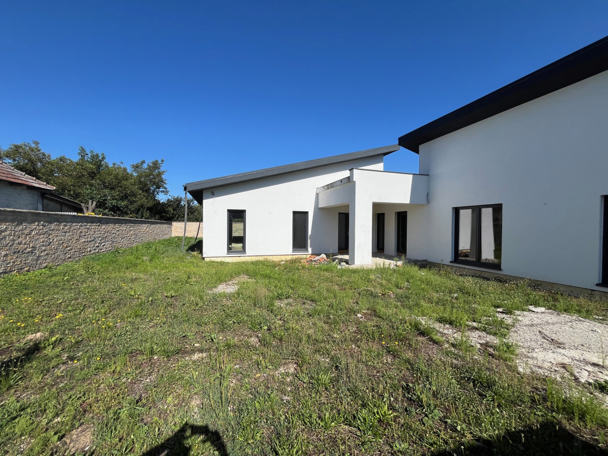 Eladó Hidasnémetiben egy luxus családi ház mely jelenleg még nem került befejezésre. Az ingatlan ebben a jelenlegi készültségi fokban is megvásárolható vagy kulcsrakész állapotban is, természetesen akkor az ár változik 160 M ft-ra. Az ingatlan jelenlegi állapota: Külső homlokzat teljesen készen van, tető szintén, külső minőségi 3 rétegű üvegezett nyílászárók beépítve, teljes gépészeti kialakítás készen van amibe a hőszivattyús rendszer kialakítása elkezdődött, a padlófűtés köröket kell még lefektetni. A ház szellőztető rendszer teljesen kiépítve ami a folyamatos friss levegő cserét biztosítja. Víz, szennyvíz csövezés is elkészült már. Illetve van már víz és villanyóra is. A teljes teketerület körbe lett kerítve 2,3 méteres magasságban előre színezett kerítés zsalukövekből.