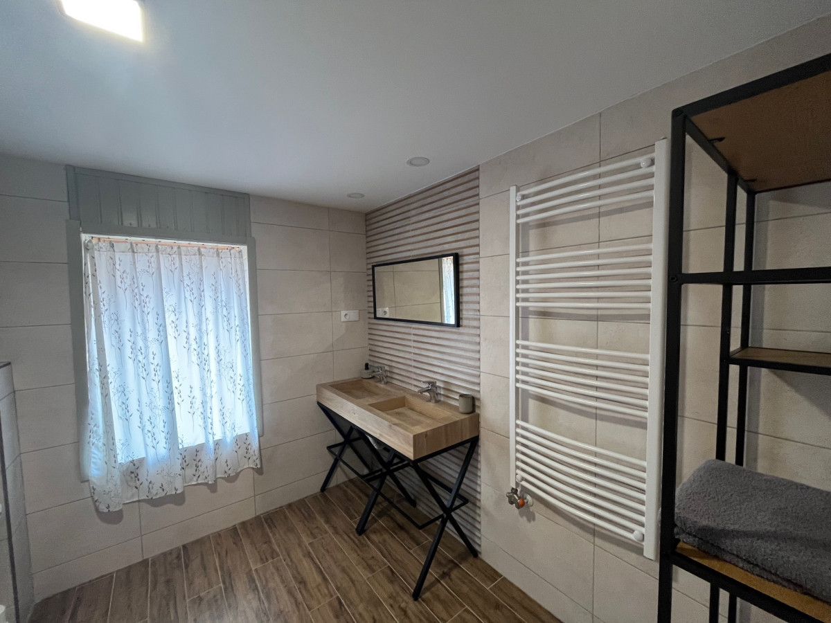 A nagyobb házban található egy 40 nm-es apartman / konyhával, fürdővel/ az alsó szinten, a felső szinten pedig szintén található egy apartman és két külön szoba is amihez külön tartozik egy fürdő-wc. Az alsó és a fenti szinthez is van külön bejárat is.